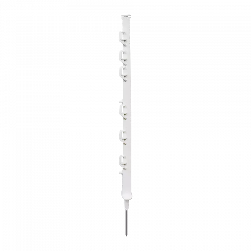 Robuste piquet blanc ou terra de 0,75m doté de 6 pattes numérotées et d'un pied extra résistant. Pour cordon, fil synthétique et ruban jusqu'à 20mm. Système de verrouillage unique "twist 'n lock", garantit une fixation simple et sûre des lignes.