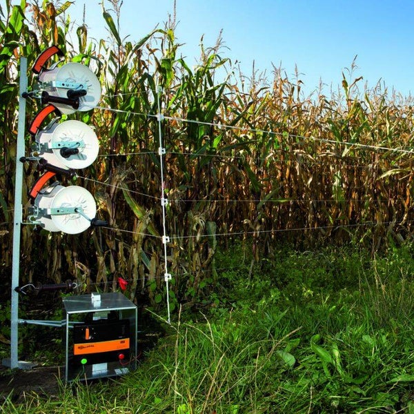Solide enrouleur avec un très grand diamètre intérieur permettant un rembobinage rapide. Conçu pour du fil synthétique ou du ruban jusqu'à 500 mètres maximum. Peut être fixé aux piquets de montage en utilisant le crochet 022014/022236. Avec démultiplicateur grâce auquel il tourne 3x plus vite.
