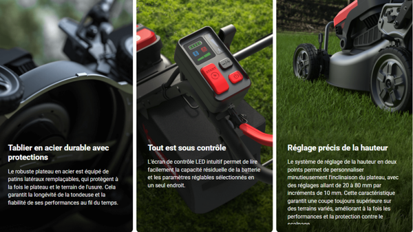 - 3 en 1 : mulching, ensachage et éjection latérale arrière
