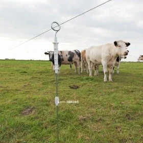 Ce piquet est lui-même électrifié, ce qui empêche les animaux de le pousser ou de s'y frotter, ce qui peut entraîner un enchevêtrement ou la perte de récoltes précieuses qui n'auraient pas dû être pâturées. La partie blanche au sommet du piquet et le pied sont isolées pour pouvoir le (dé-)placer. La hauteur du fil de ce piquet est de 0,85 mètre. En ajoutant un isolateur supplémentaire, art. 086283, ce piquet peut également accueillir un deuxième conducteur, ce qui peut s'avérer très utile lorsque vous voulez faire paître des vaches avec des veaux. Le pied de ce piquet est en plastique extrêmement solide, encore plus solide qu'un pied en métal, et convient donc aux surfaces plus dures. Enfin, l'anneau au sommet du piquet est conçue de manière à ce que le conducteur soit facile à installer, sans avoir à le toucher, et que les piquets ne s'enchevêtrent pas lorsqu'ils sont empilés. Convient pour les fils et les rubans jusqu'à 20 mm.