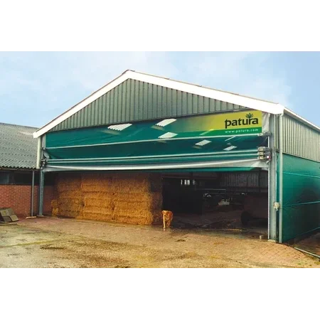 Les filets brise-vent Maxidoor sont la solution optimale pour des ouvertures jusqu’à 20 m de large. La porte est actionnée du bas vers le haut grâce aux poutres IPE du bâtiment. Le filet brise-vent Maxidoor est une solution économique pour les larges ouvertures de stabulations et hangars. Cette solution est envisageable pour les ouvertures jusqu’à 9,10 m de haut tout en conservant la largeur totale de l’ouverture, la hauteur de passage est alors de 20 % inférieure à la hauteur totale.